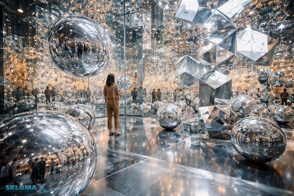 Тенденция активного использования зеркал связана с несколькими факторами. Во-первых, современное искусство стремится к интерактивности. Зеркало вовлекает человека — он видит себя внутри художественного объекта и становится его элементом. Во-вторых, отражающая поверхность усиливает декоративный эффект без дополнительных материалов. Свет, движение и даже архитектура вокруг начинают «работать» на идею автора.